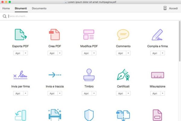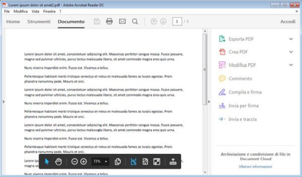 Adobe Acrobat Reader, comunemente detto Adobe Reader, è uno dei software più popolari per la visualizzazione e la gestione dei file in formato PDF. È molto facile da utilizzare e include una vasta gamma di funzioni. Quelle più basilari, come ad esempio l'evidenziatore, l'aggiunta di firme e l'esportazione dei PDF in file di testo semplici, sono disponibili per tutti. Quelle più avanzate, invece, sono riservate agli utenti che decidono di abbonarsi ai servizi pay di casa Adobe.