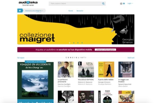 Adesso voglio parlarti di Audioteka, uno store di audiolibri in italiano che permette di scaricare audiobook di vario genere letti da narratori professionisti e attori. Non offre contenuti gratuiti (se non un audiolibro di test che si può scaricare per provare il servizio), ma i suoi prezzi sono in linea con quelli degli altri servizi: le opere vengono mediamente vendute a cifre comprese fra i 3 e i 15 euro.