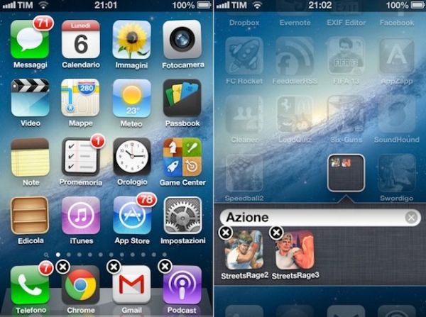 Per raggruppare le applicazioni in cartelle, invece, devi tenere premuto il dito su una di esse per un paio di secondi e aspettare che le icone comincino a “danzare”, dopodiché devi sovrapporre le app da racchiudere nelle cartelle e queste ultime verranno create automaticamente da iOS. Per maggiori informazioni a riguardo, leggi la mia guida su come spostare icone iPhone.