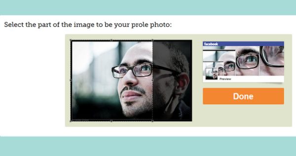 Utilizza quindi il mouse per selezionare la porzione di immagine da usare come copertina (aiutandoti con l'anteprima sulla destra per visualizzare il risultato finale) e, quando sei soddisfatto del risultato ottenuto, clicca sul pulsante Done per avviare la procedura di creazione della tua nuova copertina per il profilo di Facebook.