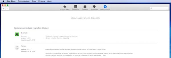 Attendi ora che la finestra di Mac App Store installato sul tuo Mac risulti visibile dopodiché pigia sulla scheda Aggiornamenti collocata in alto a destra.