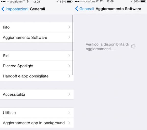 Per poter verificare la disponibilità di nuovi aggiornamenti di iOS per il tuo dispositivo e quindi per poter eventualmente aggiornare Safari su iPhone, iPad e iPod Touch devi accedere alla sezione Impostazioni del dispositivo in tuo possesso pigiando sull'apposita icona presente in home screen, fare tap sulla voce Generali annessa alla nuova schermata visualizzata e poi pigiare su Aggiornamento Software.