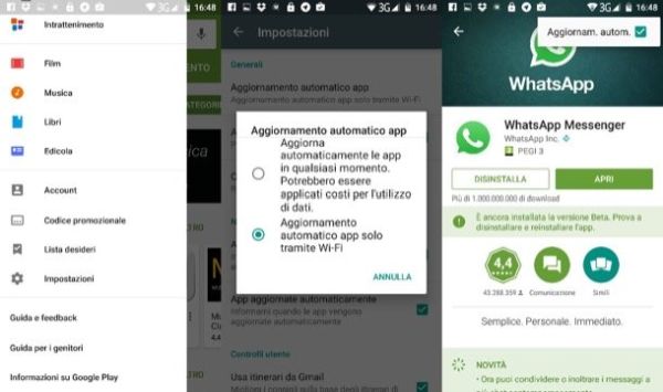 Facendo come ti ho appena detto, se ci sono degli aggiornamenti disponibili per WhatsApp o altre applicazioni installate sul tuo smartphone, questi verranno installati istantaneamente. Inoltre avrai attivato la ricerca automatica e l'installazione degli update solo tramite Wi-Fi (in modo da avere tutte le app sempre aggiornate senza consumare traffico dati).
