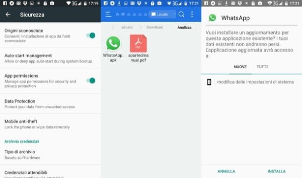 Sul tuo smartphone non è presente il Google Play Store? Evidentemente si tratta di un telefono economico e/o di importazione che per motivi legati alle licenze non ha i servizi di Google preinstallati. Per bypassare il problema e aggiornare WhatsApp devi scaricare l'applicazione dal suo sito ufficiale e installarla "manualmente" tramite pacchetto apk.