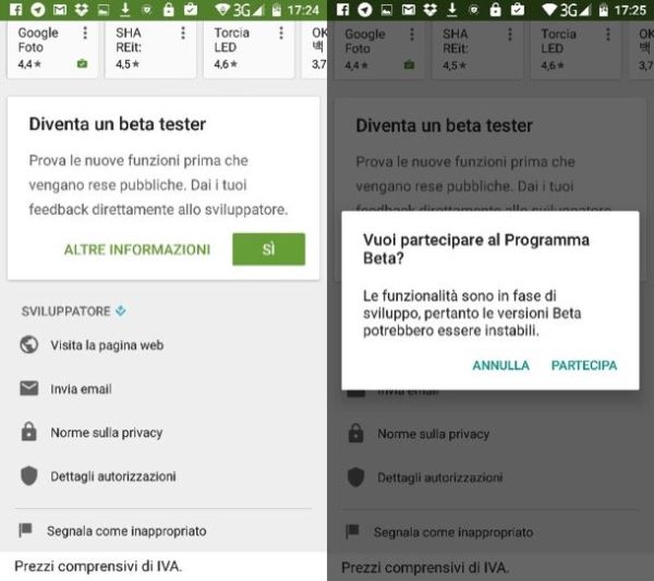 Su Android è possibile installare anche delle versioni non definitive di WhatsApp, le cosiddette versioni beta che contengono funzioni sperimentali non ancora introdotte in quella stabile. Non è un'operazione consigliata a tutti poiché tali release possono essere abbastanza instabili, ma se la cosa ti interessa posso spiegarti comunque come si fa. Trovi tutti i passaggi che devi compiere proprio qui sotto. La procedura è attuabile solo se sullo smartphone è presente il Google Play Store.