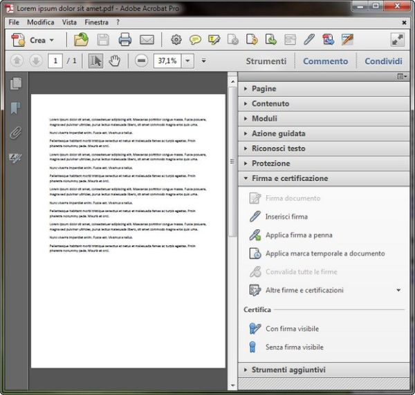 Uno dei programmi più usati per apporre la firma digitale è Adobe Acrobat, che permette di firmare documenti PDF e di trasformare altri tipi di file (ad esempio i file di Word) in file PDF per poi includere la firma digitale in questi ultimi. Per firmare un documento con Acrobat Reader, non devi far altro che importarlo nel programma e cliccare sul pulsante Firma, se presente nella barra degli strumenti, oppure prima sulla voce Strumenti collocata in alto a destra e poi sulla voce Firma e certificazione > Inserisci firma che si trova nella barra laterale di destra. Inserisci quindi il PIN e tutti i dati richiesti per la tua firma digitale (sono tutti compresi nel kit) e salva il file per convalidarlo. Trovi qualche esempio pratico anche sul sito di Poste Italiane.