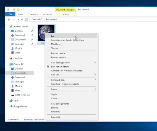 Per aprire i file PNG su Windows individua dunque l'elemento su cui è tua intenzione andare ad agire, cliccaci sopra con il tasto sinistro del mouse per due volte consecutive dopodiché attendi che la finestra del visualizzatore di immagini risulti visibile a schermo. In alternativa, puoi aprire i file PNG utilizzando il visualizzatore di immagini disponibile di serie su Windows cliccando con il tasto destro del mouse sul file che intendi visualizzare e pigiando poi sulla voce Apri annessa al menu che ti viene mostrato.
