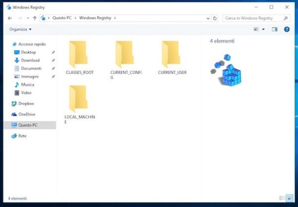 Da questo momento in poi, sarai libero di navigare nel registro di Windows facendo clic sull'icona raffigurante una cartella gialla presente sulla barra delle applicazioni, facendo doppio clic sulla voce Computer o Questo PC (la voce può variare a seconda della versione di Windows in uso) collocata nella bara laterale presente sulla sinistra e cliccando per due volte consecutive sulla voce Windows Registry contenuta nelle risorse del computer. Più semplice di così?