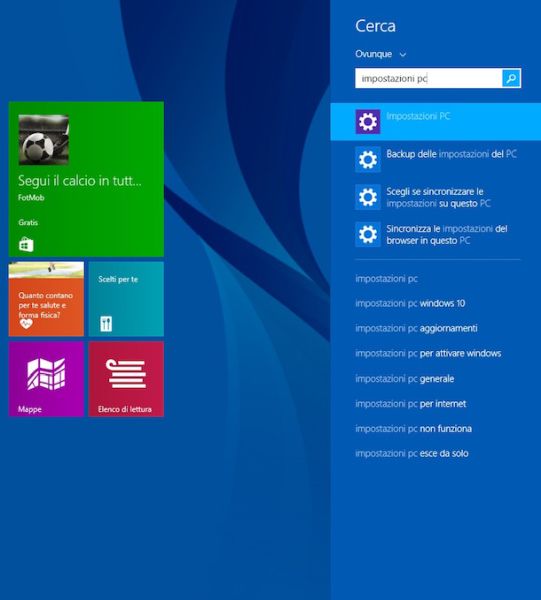Se invece ti interessa capire come attivare Windows ma hai già provveduto a fornire il product key in tuo possesso tutto quello che devi fare è recarti nelle impostazioni del computer e cliccare sul pulsante di attivazione del sistema mentre sei connesso ad Internet. Per fare ciò accedi accedi alla Start Screen, pigia sul campo di ricerca collocato in alto a destra, digita impostazioni pc e poi fai clic sul primo risultato presente in elenco. Nella schermata che a questo punto andrà ad aprirsi seleziona la voce relativa all'attivazione di Windows dalla barra laterale di sinistra, clicca sul pulsante Attiva ed attendi che la procedura venga portata a termine.