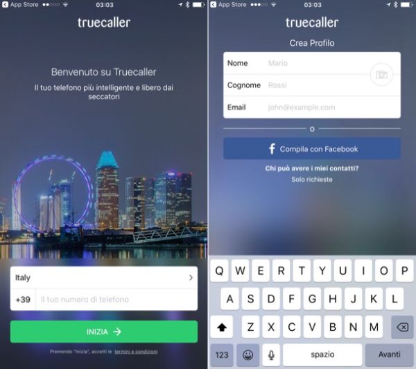 Ora segui la presentazione di TrueCaller e attiva la funzione di identificazione delle chiamate. Per compiere quest'operazione, recati nelle impostazioni di iOS, seleziona le voci Telefono e Blocco chiamate e identificazione e sposta su ON la levetta relativa a TrueCaller. Se non vedi la levetta relativa a TrueCaller, significa che stai usando una versione di iOS precedente alla 10 e quindi non puoi sfruttare la funzione di identificazione dei numeri di telefono (quindi non puoi consentire a TrueCaller di farti sapere quando ti sta contattando un seccatore).