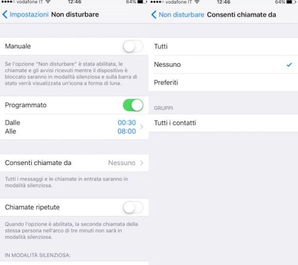 Se il sistema per bloccare chiamate iPhone che ti ho appena suggerito non ti interessa puoi riuscire nel tuo intendo anche in un altro modo: sfruttando la funzione Non disturbare di iOS.