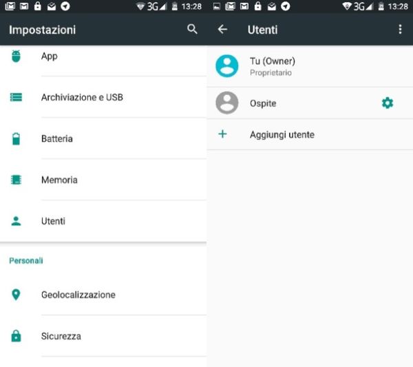 Se hai bisogno di cambiare account Play Store perché il tuo smartphone/tablet è utilizzato da più persone e ognuna di esse ha il proprio account Gmail, puoi anche sfruttare la funzione multi-user di Android e creare degli account utente separati.