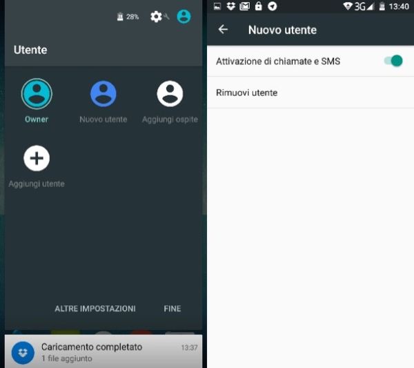 Per regolare le impostazioni avanzate di un account utente (es. la possibilità di effettuare SMS e chiamate), invece, basta andare nel menu Impostazioni > Utenti di Android usando l'account primario e pigiare sull'icona dell'ingranaggio collocata accanto al nome del profilo da modificare.