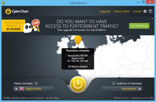 TunnelBear non ha saputo attirare in maniera particolare la tua attenzione? Allora dal subito un'occhiata a CyberGhost. Si tratta di un altro strumento da scaricare ed installare sul computer che consente di cambiare IP del PC senza dover effettuare configurazioni particolari per poter funzionare.