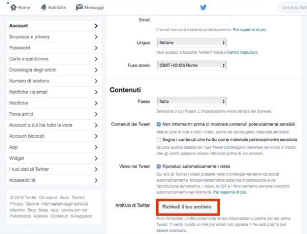 Come dici? Prima di abbandonare Twitter e cancellare definitivamente il tuo account vorresti creare una copia di backup di tutti i tuoi messaggi? Nessun problema, si può fare anche quello. Tutto quello che devi fare è collegarti al pannello delle impostazioni del tuo account, pigiare sul pulsante per richiedere un archivio dei tuoi tweet e attendere che l'archivio venga preparato (la durata della procedura è variabile). Per maggiori dettagli continua a leggere, trovi spiegato tutto qui sotto.