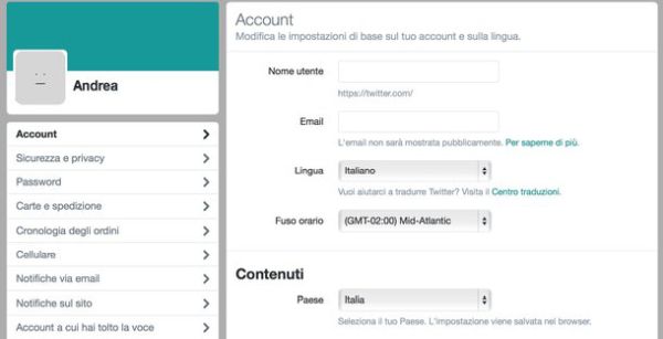 Qualora volessi lasciare libero il tuo attuale nickname su Twitter e/o volessi lasciarti aperta la possibilità di iscriverti nuovamente al servizio utilizzando lo stesso indirizzo email, prima di cancellare il tuo account, modifica il nome e l'indirizzo di posta elettronica associato a quest'ultimo.