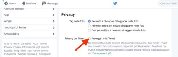 Da smartphone, puoi raggiungere lo stesso risultato avviando la app ufficiale di Twitter e recandoti nelle impostazioni del tuo account (operazione che su Android si può compiere pigiando sulla foto del profilo e su iOS selezionando l'icona dell'ingranaggio). Nella schermata che si apre, vai dunque su Privacy e contenuti, metti il segno di spunta accanto alla voce Proteggi i miei tweet e il gioco è fatto.