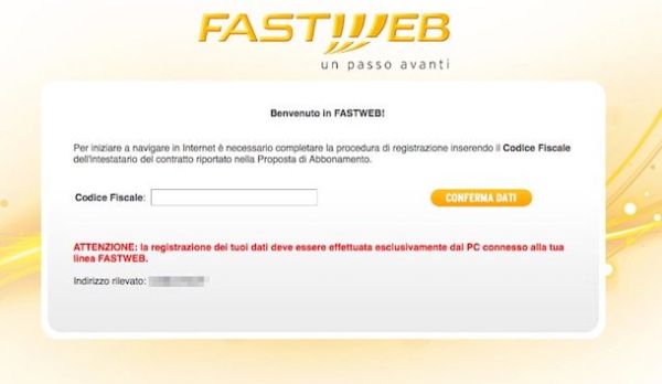 Dopo aver portato a termine la procedura per configurare modem Fastweb, tieni conto del fatto che per navigare in rete dovrai prima provvedere a verificare i tuoi dati. Per fare ciò, apri una pagina del tuo browser Web preferito, digita nella barra degli indirizzi http://registrazione.fastweb.it e premi il pulsante Invio presente sulla tastiera per visualizzare la pagina di registrazione Fastweb. Inserisci quindi i dati richiesti seguendo le indicazioni a schermo.