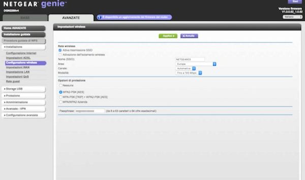 Nel caso in cui si tratti di un modem dotato di connettività Wi-Fi dovrai inoltre provvedere ad impostare una password per l'accesso alla rete wireless. Onde evitare che qualcuno possa intrufolarsi nella tua rete Wi-Fi e sfruttare la connessione ad Internet a tua insaputa, ti consiglio di usare una chiave di tipo WPA2/AES molto lunga e che non abbia un senso compiuto. Se desideri approfondire l'argomento, puoi consultare la mia guida su come mettere password rete wireless.