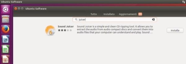 Per installare Sound Juicer sul tuo computer, avvia l'Ubuntu Software Centre (il sacchetto della spesa arancione che si trova nella barra laterale di sinistra), cerca "sound juicer" e clicca sul pulsante Installa che si trova di fronte all'icona dell'applicazione. Per completare l'operazione ti verrà chiesto di digitare la password di amministrazione di Ubuntu.