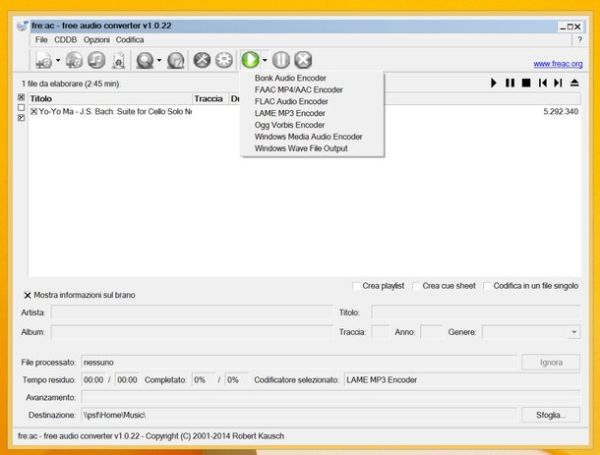 Fre:ac è senza ombra di dubbio uno dei migliori convertitori audio disponibili attualmente su piazza. I suoi principali pregi? È gratuito, open source, compatibile con tutti i sistemi operativi più diffusi (Windows, Mac OS X e Linux) e supporta una vasta gamma di file audio: MP3, OGG, FLAC, AAC, WMA ed altri ancora.