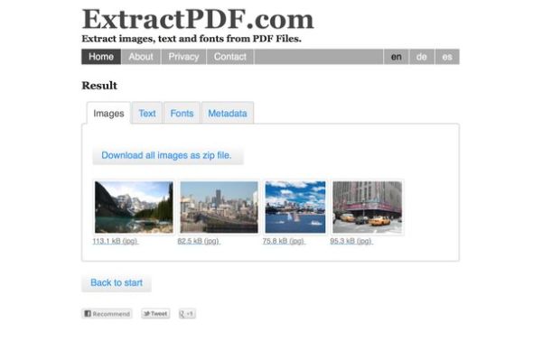 Qualora SmallPDF non dovesse soddisfarti, puoi utilizzare ExtractPDF che, come suggerisce facilmente il nome, permette di estrapolare le immagini dai PDF salvandole in formato JPG.