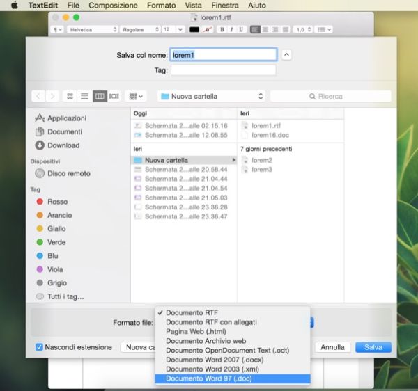 Vuoi convertire RTF in DOC su un Mac? Nulla di più facile: non devi nemmeno scaricare programmi aggiuntivi sul computer. Tutto quello che devi fare è selezionare il documento da trasformare in file di Word e aprirlo con TextEdit, l'editor di testo presente “di serie” in OS X.