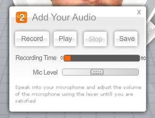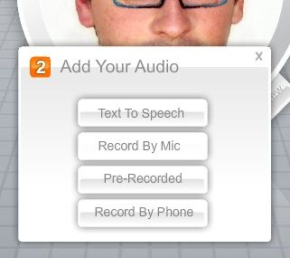 Se vuoi, puoi fare assumere diverse espressioni al tuo personaggio, utilizzando il riquadro Choose an Emotion in alto a destra. Per dare voce al tuo personaggio tramite il tuo microfono, fai click prima sul pulsante Add Your Audio e poi sul pulsante Record by Mic.