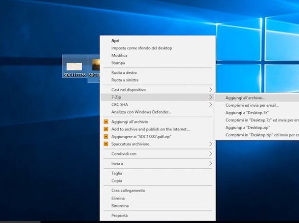 A questo punto, che tu ci creda o meno, tutto ciò che devi fare per poter creare file ZIP altro non è che selezionare con il pulsante destro del mouse l'elemento su cui è tua intenzione agire, cliccare sulla voce 7-Zip annessa al menu che ti viene mostrato e poi scegliere la voce Aggiungi all'archivio....
