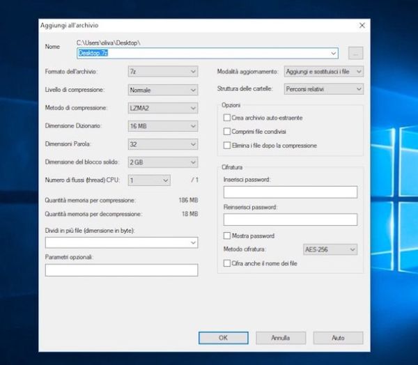 Se lo ritieni opportuno puoi anche proteggere i tuoi archivi con una password. Per fare ciò digita la parola chiave che intendi utilizzare nei campi Inserisci password: e Reinserisci password: presenti in basso a destra nella finestra per la creazione di un nuovo archivio.