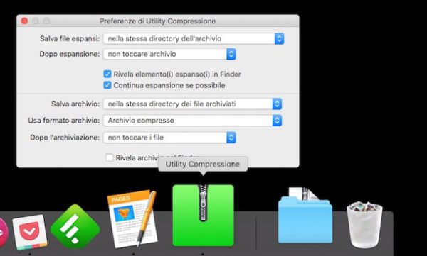 Se ti interessa personalizzare il funzionamento di Utility Compressione ti basta invece pigiare sull'icona di Spotlight collocata in alto a destra sulla barra dei menu, digitare utility compressione nel campo di ricerca che ti viene mostrato a schermo e fare doppio clic sul primo risultato visualizzato, quello collocato sotto la voce Il migliore. Attendi poi che l'icona di Utility Compressione risulti visibile sul Dock dopodiché pigiaci sopra, fai clic sulla voce Utility Compressione presente nella parte in alto a sinistra della barra dei menu e poi pigia su Preferenze.... Dalla nuova finestra che ti verrà mostrata a schermo potrai poi modificare il percorso dove salvare i file espansi, scegliere l'azione predefinita da effettuare dopo l'archiviazione e molto altro ancora. Per confermare le modifiche apportate chiudi semplicemente la finestra dell'utility.