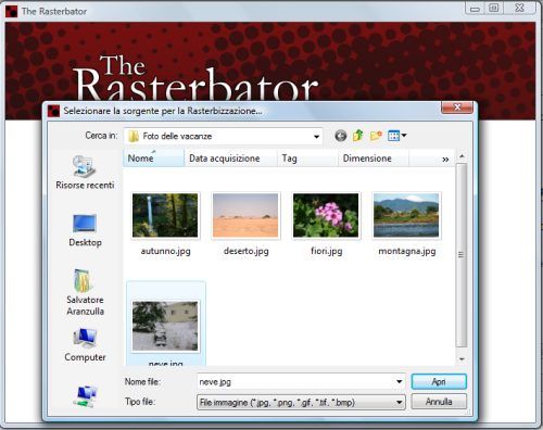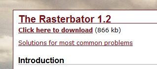 Collegati su questa pagina Web e fai click sulla voce Click here to download per scaricare il programma gratuito The Rasterbator. Al termine dello scaricamento, estrai l'archivio scaricato in una cartella qualsiasi del tuo computer e fai doppio click sul programma Rasterbator appena estratto per avviarlo.