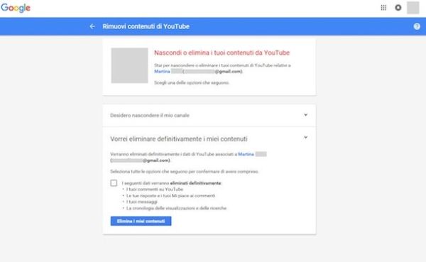 La procedura eliminerà il tuo canale, i tuoi video ma non altri dati collegati al tuo account Google (es. i commenti creati dopo il mese di novembre 2013 e i messaggi creati prima di luglio 2014). Per cancellarli dovresti eliminare anche il tuo account Google+ (perdendo quindi la possibilità di accedere al social network di Google).
