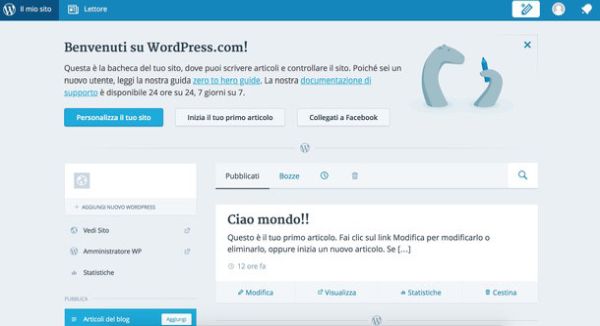 A questo punto, conferma nuovamente la volontà di utilizzare il piano gratuito di WordPress, cliccando sul bottone Seleziona gratuito e sarai indirizzato verso il pannello di gestione del tuo blog. Ora sei già pronto a postare il tuo primo articolo, ricordati però di verificare la tua identità cliccando sul link che hai ricevuto via email.