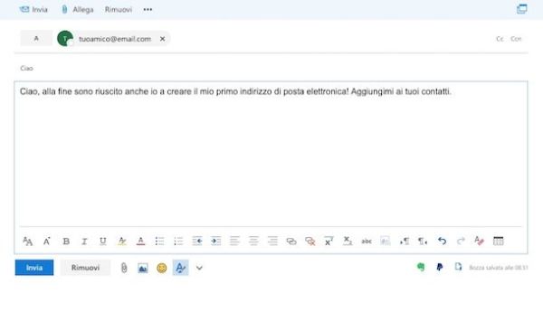 Una volta completata la stesura della tua e-mail, che puoi formattare come un qualsiasi documento di testo con grassetti, sottolineature, ecc. utilizzando gli apposti strumenti per la modifica testuale generalmente collocati nella parte alta della schermata del messaggio, non devi far altro che cliccare sul pulsante Invia solitamente collocato in alto a sinistra e il gioco è fatto.