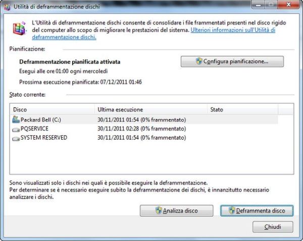 Se vuoi imparare come deframmentare l'hard disk del computer ed utilizzi come sistema operativo Windows 7 oppure Windows Vista, sappi che puoi dormire sonni tranquilli. Nelle ultime versioni del suo sistema operativo, Microsoft ha infatti introdotto una funzione di deframmentazione automatica che provvede ad ottimizzare la posizione dei file sul disco in maniera automatica nei momenti di inattività del PC, senza che l'utente se ne accorga o debba muovere un dito.