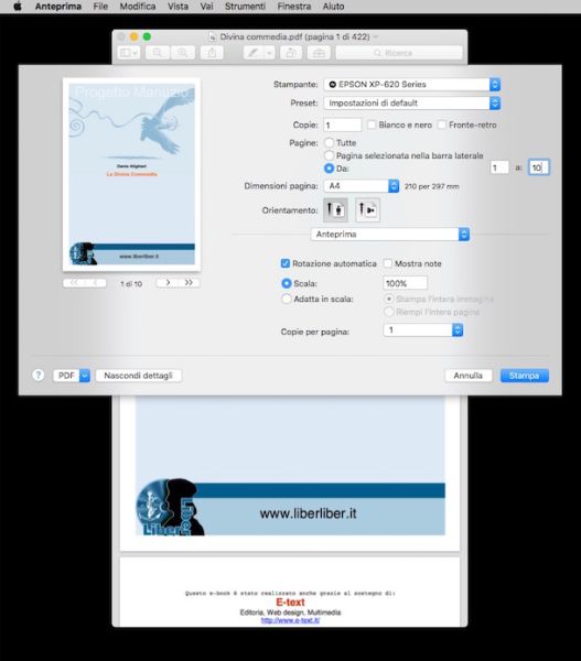 Ora che visualizzi il PDF pigia sulla voce File annessa alla barra dei menu in alto a sinistra e poi fai clic sulla voce Stampa…. Oltre che così come ti ho appena indicato puoi accedere al comando per la stampa del file pigiando la combinazione di tasti cmd+p sulla tastiera del Mac. Successivamente metti il segno di spunta acanto alla voce Da: nella finestra che si apre.