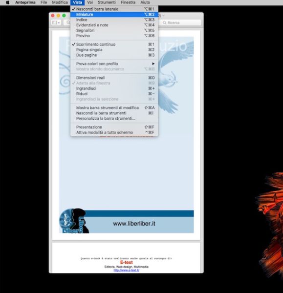 In alternativa alla procedura che ti ho appena indicato sappi che puoi andare a dividere pagine PDF su Mac con Anteprima anche sfruttando un altro sistema. Tanto per cominciare apri in Anteprima il documento in formato PDF su cui è tua intenzione agire facendoci doppio clic sopra con il tasto sinistro del mouse, pigia sulla voce Vista collocata nella parte in alto a sinistra della barra dei menu e seleziona la voce Miniature.