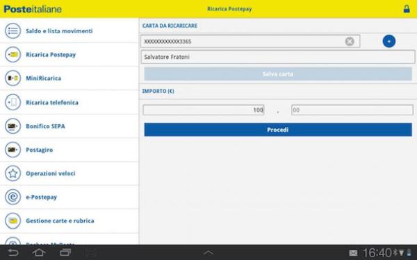 Un ulteriore e comodissimo sistema per effettuare una ricarica Postepay consiste nell'agire tramite Web o app. Nello specifico, puoi effettuare una ricarica Postepay mediante il sito Web dedicato alla carta, tramite il sito di BancoPosta Click oppure sfruttando l'apposita applicazione Postepay per iPhone e dispositivi Android. Per scoprire come fare e per saperne di più a riguardo puoi attenerti alle indicazioni presenti nella mia guida su come caricare la Postepay da Internet.