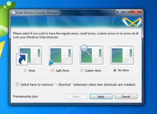 A download completato apri, facendo doppio click su di esso, il file appena scaricato (FxVisor64.msi) e, nella finestra che si apre, fai click prima su Esegui e poi su Next per tre volte consecutive, Sì e Close per terminare il processo d'installazione di Vista Shortcut Manager. Adesso, avvia il programma facendo doppio click sulla sua icona presente sul desktop e, nella finestra che si apre, metti il segno di spunta accanto alla voce No arrow e clicca sul pulsante Apply per rimuovere la freccetta dei collegamenti.