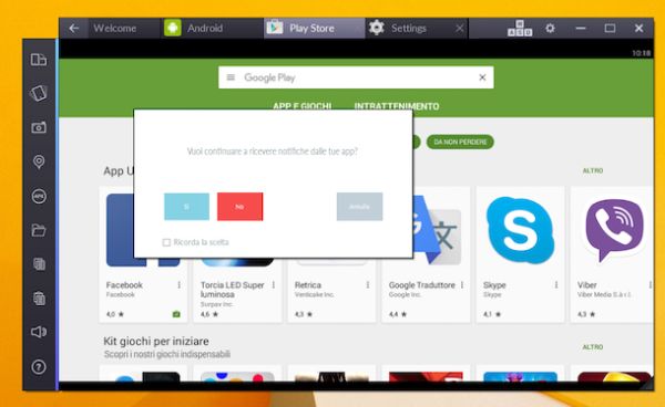 Se ti interessa capire come fare per poter emulare Android su PC ti suggerisco in primis di rivolgerti a BlueStacks. Qualora non ne avessi mai sentito parlare sappi che si tratta di un software per PC (ma anche per Mac!) che permette di emulare Android sul computer e di installare applicazioni direttamente da Google Play. È completamente in italiano, non richiede configurazioni particolari e supporta anche i giochi. La versione base del software è totalmente gratuita ma, questo è bene che tu lo tenga presente, prevede il download forzato di alcune app promozionali. La versione completa del software presenta invece un costo di 24 dollari all'anno e non obbliga l'utente al download si specifiche app.