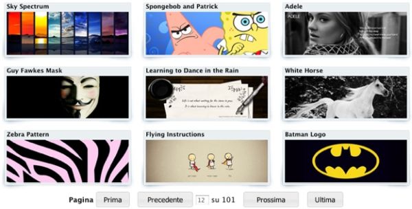 Per usare Timeline Covers, non devi far altro che sfogliare le copertine disponibili in base a popolarità o genere di appartenenza, passare con il puntatore del mouse sull'anteprima di quella che vuoi usare nel tuo profilo e cliccare sul pulsante Scegli. Per completare l'operazione, devi autorizzare l'applicazione ad accedere al tuo profilo. Trovi tutte le informazioni necessarie su come riuscirci nella mia guida dedicata a come personalizzare la pagina di Facebook.