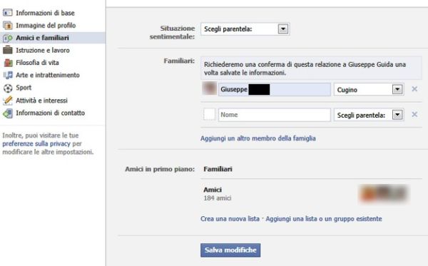 Quando hai finito di aggiungere parenti su Facebook, devi salvare le impostazioni cliccando sul pulsante Salva modifiche. Attenzione, però, perché l'aggiunta di una persona tra i familiari non è automatica, affinché le modifiche abbiano effetto devi aspettare che le persone selezionate confermino il loro grado di parentela con te.
