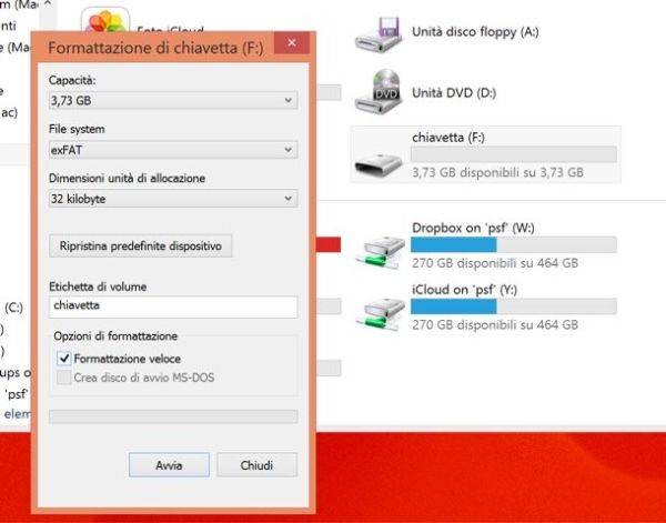 Windows utilizza di default la formattazione veloce per trattare chiavette USB e dischi, questo significa che rimuove tutti i dati dall'unità senza però controllarne l'integrità. Se vuoi che in seguito alla formattazione venga analizzato il volume in maniera più accurata per individuare eventuali settori danneggiati, rimuovi la spunta dalla voce Formattazione veloce. Sappi però che così facendo aumenterai di molto i tempi necessari per la formattazione.