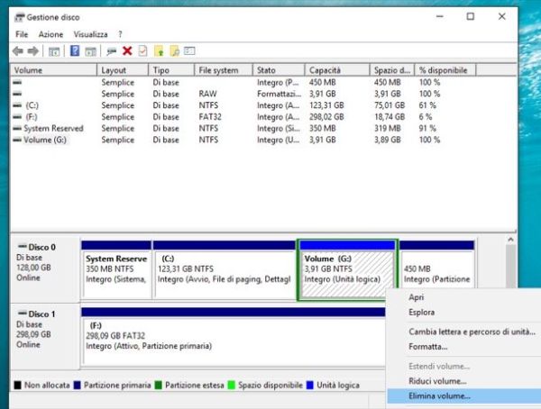 Se vuoi formattare una sola partizione e non un drive intero, apri l'utility per la gestione dei dischi inclusa in Windows e seleziona solo la partizione da formattare. Trovi maggiori dettagli sull'intera procedura nel mio tutorial su come partizionare hard disk.