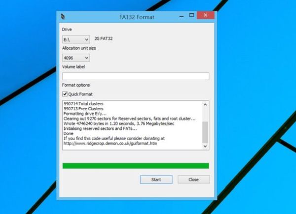 Per scaricarlo sul tuo PC, collegati al suo sito Internet ufficiale e clicca sulla “foto” del programma. A download completato, avvia l'eseguibile guiformat.exe, seleziona l'unità della formattare dal menu a tendina Drive e clicca prima su Start e poi su OK per avviare la formattazione. Mantenendo o togliendo la spunta dall'opzione Quick format puoi scegliere se effettuare una formattazione rapida o completa.