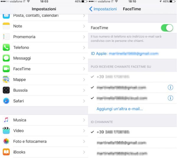 Ad operazione completata puoi scegliere quali tuoi recapiti rendere rintracciabili dagli altri utenti per comunicare su FaceTime (es. il numero di telefono del tuo iPhone, l'indirizzo email associato al tuo ID Apple ecc.).