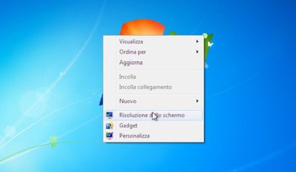 Se utilizzi un computer con su installato Windows Vista oppure Windows 7 per girare lo schermo puoi sfruttare un'apposita funzione accessibile direttamente da desktop. Per girare lo schermo pigia quindi con il tasto destro del mouse in un qualsiasi punto vuoto del desktop e poi fai clic sulla voce Risoluzione dello schermo annessa al menu che ti viene mostrato.