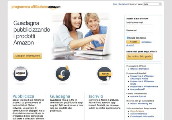 Tra i servizi di affiliazione più popolari (e redditizi) c'è quello di Amazon che permette di incassare commissioni che vanno dal 5 al 12% sull'acquisto di libri, gadget tecnologici, film, videogame e qualsiasi altro prodotto in vendita sul noto store digitale.