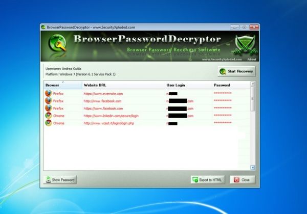 Una volta “bucato” il computer da hackerare, non c'è nulla di meglio che fare incetta delle password per siti Internet e social network salvate nel sistema. In questo compito, può darti una mano BrowserPasswordDecryptor. Si tratta di un programma assolutamente gratuito che con un solo click permette di recuperare tutti gli username e le password salvate in Internet Explorer, Firefox e Chrome.